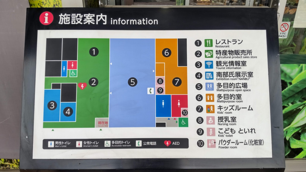 そしてここ、道の駅「なんぶ」のテーマは、【「体感型」食のテーマパーク】です。特産の南部茶をテーマにしたグルメスポットになっています。ここでしか買えない特産品を使った商品やご当地ならではのグルメがたくさんあります。地元農家さんが育てた農産物、フルーツも豊富に取り揃えていますとのことです。(パンフレットより)
