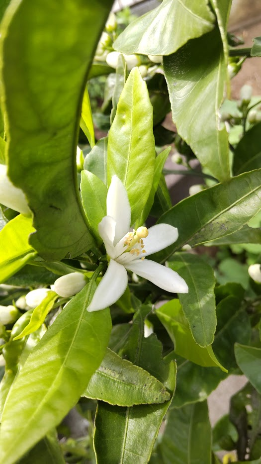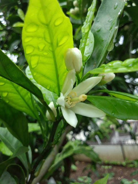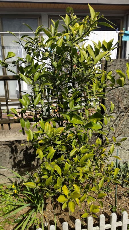 親戚の家のみかんは、まだ1メートルほどの若木です。