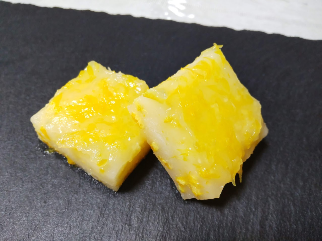 みかんの香りがとてもよく、とても上品なお味になります。即席のういろうのため、当日中に食べきりましょう。冷蔵庫に入れると固くなりますのでご注意ください。